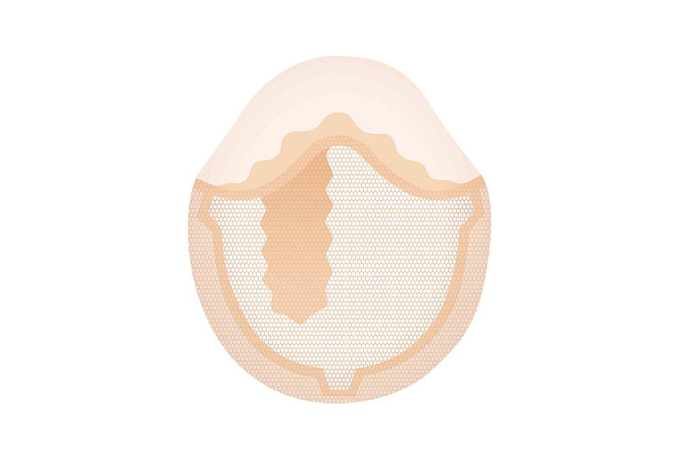 가발을 고정하는 패치 라인의 두께와 면적을 줄여 피부와 가발의 연결 부위를 자연스럽게 만든 탑 시크릿의 구조도.