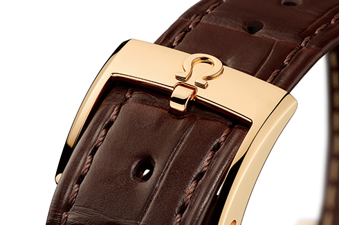 4 오메가 로고로 완성한 폴리싱 처리한 18K 문샤인™ 골드 버클.