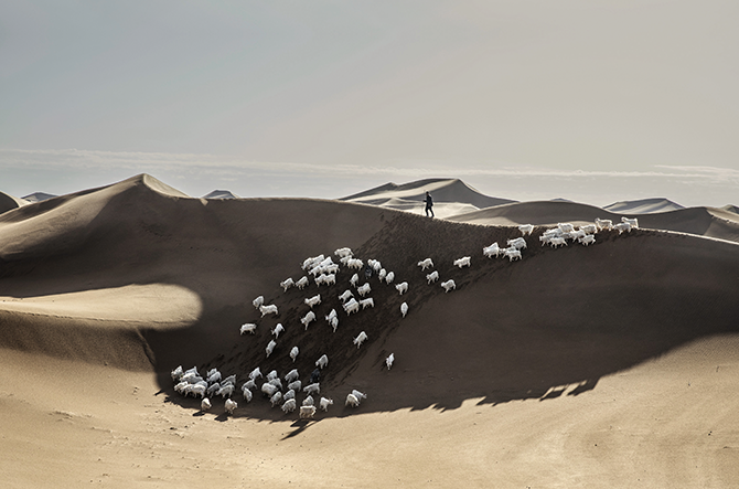 1 내몽골의 염소 목동들이 새끼 염소가 한 살이 되기 전에 빗질해 얻은 솜털 같은 섬유로 완성한 베이비 캐시미어.