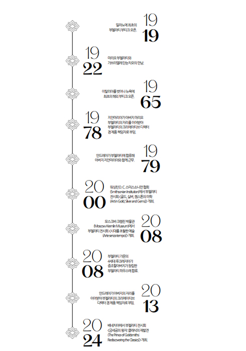 2024년 4월 18일부터 6월 18일까지 베니스 주데카에서 <금세공의 왕자: 클래식의 재발견(The Prince of Goldsmiths: Rediscovering the Classics)> 전시회가 열린다. 진귀한 오브제와 프레젠테이션 영상이 선사하는 몰입감 넘치는 경험을 통해 부첼라티의 세계를 엿볼 수 있다.