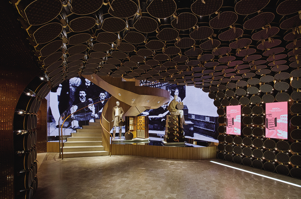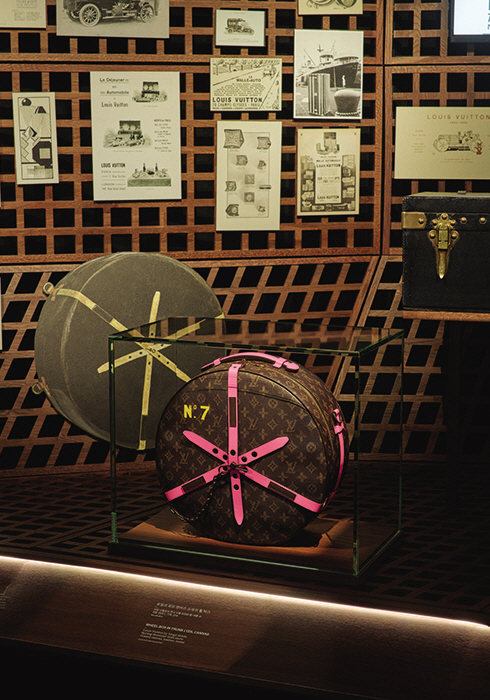 특히 4층에서 5층으로 이어지는 문화 체험형 공간은 일반 매장에서는 상상할 수 없는 곳이다. 비너저리 저니는 이름처럼 여행의 예술을 다채로운 이야기와 장인 정신을 담아 하나의 별자리처럼 펼쳐낸다. 이 공간에서는 최초의 플랫 트렁크부터 현대적인 아이콘은 물론, 맞춤 제작, 워치, 패션, 음악에 이르기까지 루이 비통이 걸어온 여정을 한눈에 보여준다. 비저너리 저니는 1층의 부아뜨 샤포(Boîte Chapeau, 햇 박스)로 둘러싸인 터널형의 ‘트렁크스케이프(Trunkscape)’ 룸에서 시작된다. 무려 2백49개의 실제 햇 박스로 루이 비통의 헤리티지와 웅장함을 표현한다. 5층으로 가면 ‘기원(Origins)’ 룸부터 하우스의 역사적인 순간과 진화를 담은 공간을 만나볼 수 있다. ‘기원’ 룸에서는 말 그대로 루이 비통의 기원이자 시초가 된 과거 트렁크들을 시간순으로 보여준다. 첫 트렁크의 탄생부터 모노그램 캔버스로 완성한 트렁크, 교통수단의 발전으로 점차 견고해진 트렁크의 모습 등 역사의 흐름에 따라 발전해온 트렁크의 모습을 확인할 수 있다.