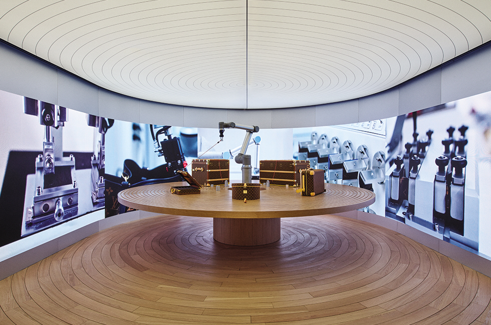 그 후에 이어지는 ‘워치(Watch)’ 룸에서는 1909년 메종이 등록한 첫 워치, 스타 클락을 시작으로 현재 땅부르 워치까지 이어지는 루이 비통 워치메이킹의 역사를 확인할 수 있다. 세 번째 ‘피크닉(Picnic)’ 룸에서는 20세기 초 자동차의 등장과 함께 시작된 야외 피크닉 문화에서 영감받은 피크닉 트렁크와 도자기, 은식기, 유리 제품 등으로 꾸민 공간을 만날 수 있으며, ‘맞춤 제작(Personalisation)’ 룸에서는 루이 비통이 여행자의 편의를 위해 제작한 수많은 트렁크 견본을 볼 수 있다. 그 뒤로는 아니에르 공방을 그대로 옮겨놓은 ‘공방(Workshop)’ 룸, 하우스 제품의 품질을 담당하는 내구성 테스트 과정을 그대로 재현해놓은 ‘테스트(Testing)’ 룸, 니콜라 제스키에르(Nicolas Ghesquière)부터 퍼렐 윌리엄스(Pharrell Williams)까지, 하우스 유산에 각자 고유의 흔적을 남긴 아티스틱 디렉터의 비전을 담은 ‘아이콘(Icons)’ 룸, 1896년 탄생한 이래 모노그램의 기원을 되짚는 ‘모노그램(Monogram)’ 룸이 이어진다. 이후 루이 비통과 떼놓을 수 없는 음악과의 연관성을 담은 ‘음악(Music)’ 룸, 마크 제이콥스(Marc Jacobs)부터 버질 아블로(Virgil Abloh), 무라카미 다카시(Murakami Takashi) 등 아티스트와 협업해 선보인 제품을 전시해둔 ‘협업(Collaboration)’ 룸, 루이 비통을 거쳐 간 아티스틱 디렉터들의 대표 컬렉션 룩을 전시한 ‘패션(Fashion)’ 룸에서 체험이 끝난다. 이 체험형 공간은 OMA의 쇼헤이 시게마츠(Shohei Shigematsu)가 패션계 큐레이터들과 협업해 구성했다. 기술, 예술, 역사, 혁신을 해부하듯 보여주는 이 공간을 모두 방문하고 나면 루이 비통의 DNA를 온몸으로 느낄 수 있을 것이다.