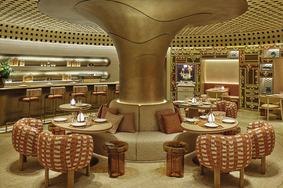문화 체험형 공간이 끝나는 4층에 위치한 ‘르 쇼콜라 막심 프레데릭 앳 루이 비통’과 ‘르 카페 루이 비통’ 역시 지나칠 수 없는 공간이다. 특히 파리, 뉴욕, 싱가포르, 그리고 한국, 전 세계 단 네 곳에서만 경험할 수 있는 ‘르 쇼콜라 막심 프레데릭 앳 루이 비통’에서는 블루를 포인트로 한 ‘블루 비비안(Blue Vivienne)’ 초콜릿을 비롯해 그 어디에서도 맛볼 수 없는 고급 초콜릿을 만나볼 수 있다. 더불어 ‘르 카페 루이 비통’에서는 2025년 세계 최고의 페이스트리 셰프로 선정된 막심 프레데릭(Maxime Frédéric)의 크리에이티브 디렉팅 아래 섬세한 페이스트리와 프랑스 전통에 한국적 감성을 더한 바리스타 메뉴를 선보인다. 대표 메뉴로는 오브제 노마드(Objets Nomades)가 디자인한 익스클루시브 스탠드 위에 올린 미니어처 시그너처 앙트르메(Miniature Signature Entremets)가 있으며, 초콜릿 모노그램(Chocolate Monogram), 티라미수 몬테나폴레오네(Tiramisu Montenapoleone), 바닐라 드림(Vanilla Dream), 헤이즐넛 플라워(Hazelnut Flower), 스트로베리 샬롯(Strawberry Charlotte), 그리고 고구마 페튤라(Goguma Petula)뿐 아니라 두 가지 익스클루시브 한국 스타일 메뉴까지 선보인다. 이 메뉴들은 카페의 시그너처 음료인 체스트넛 캐러멜 아이스 라테(Chestnut Caramel Iced Latte)와 완벽한 조화를 이룬다. 루이 비통 비저너리 저니 서울의 여정을 완성하는 6층 레스토랑 ‘제이피 앳 루이 비통’에서는 뉴욕의 미슐랭 투 스타 레스토랑 아토믹스(Atomix)로 잘 알려진 셰프 박정현의 미식을 선보인다. 이는 루이 비통의 첫 한국 출신 셰프 레스토랑이다. 훌륭한 요리를 따뜻한 사프란 톤의 컨스텔레이션(Constellation) 테이블웨어에 담아 제공할 예정이며, 방문객은 완벽하게 페어링되고 풍미 가득한 메뉴로 구성된 5코스 헤리티지 테이스팅 메뉴(Heritage Tasting Menu)를 경험할 수 있다. 이 메뉴에는 부드러운 달걀찜과 함께 제공하는 간장게장(Soy Sauce Marinated Blue Crab, Smooth Egg Custard)이 포함되며, 세련된 해물 요리를 떠올리게 하는 섬세한 감칠맛을 선사한다. 또 한국식 겨자와 고추장으로 풍미를 더한 보다 대담한 구성의 랍스터(Lobster, Mustard, Gochujang Sauce)는 조화로운 매운맛과 깊이를 더한다. 이어 비트와 갈비 소스를 곁들인 한우 안심(Hanwoo Tenderloin, Beetroot, Galbi Sauce)이 한식의 진한 풍미를 강조한다. 마지막은 장인의 손길로 만든 쌀 아이스크림과 감귤 소르베 위에 은은한 막걸리 폼(Rice Ice Cream, Tangerine Sorbet, Makgeolli Foam)을 올린 디저트 등으로 상쾌하고 달콤하게 마무리되며, 정성스럽게 구성한 메뉴를 우아하게 완성한다. ‘제이피 앳 루이 비통’은 1월 오픈 예정이다.