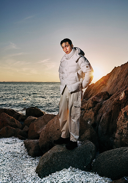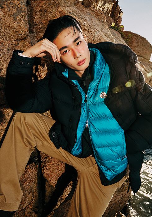 오리지널 다운 퀼팅 재킷을 동시대적 감각으로 재해석한 마야 70 재킷, 빅 포켓이 달린 코튼 소재 팬츠, 트레일그립 GTX 스니커즈 모두 가격 미정 몽클레르 컬렉션.