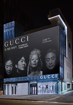 2 전시 캠페인을 걸어둔 구찌 가옥 외관.