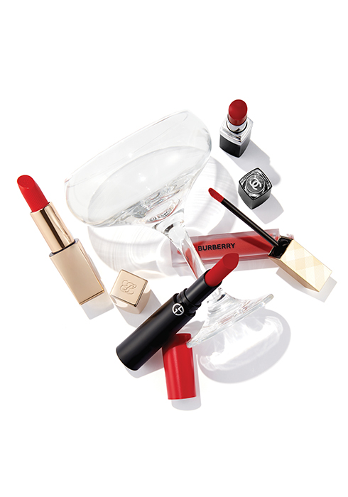 에스티 로더 퓨어 컬러 립스틱 #520 카날 모이스처 락 콤플렉스 성분을 담아 입술 보습 케어는 물론 롱웨어 포뮬러로 우수한 발색력과 편안함을 선사한다. 3.5g 4만8천원. 문의 02-6971-3203 샤넬 루쥬 코코 블룸 #158 브라이트 천연 왁스와 오일 성분으로 촉촉하고 볼륨감 있는 립 메이크업을 연출할 수 있다. 3g 5만5천원. 문의 080-805-9638 버버리 뷰티 키세스 리퀴드 매트 #118 파이어 레드 끝이 둥근 애플리케이터로 바르기 쉬우며, 비건 포뮬러가 뭉침 없이 컬러가 오랜 시간 유지되도록 돕는다. 6ml 5만1천원. 문의 080-850-0708 조르지오 아르마니 뷰티 립 파워 마뜨 #400 트루 레드 입술 라인에 맞춘 물방울 불렛 디자인으로 섬세하게 바를 수 있으며, 호호바 오일로 보습력을 더했다. 3.1g 5만7천원대. 문의 080-022-3332