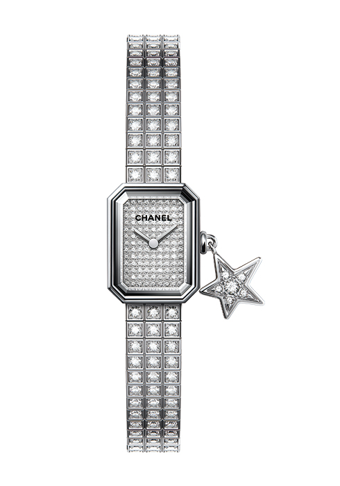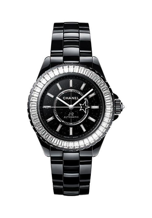 가장 먼저 주목할 것은 이번 인터스텔라 컬렉션의 이름을 그대로 붙인 J12 인터스텔라 워치다. 별이 빛나는 밤하늘을 6개의 다이아몬드와 어벤추린으로 반짝이는 블랙 래커 다이얼에 그대로 담아냈으며, 초를 나타내는 핸즈 끝에 별 모티브를 달아 혜성이 가로지르는 듯한 느낌을 표현했다. 사파이어 크리스털 케이스 백에는 ‘한정판(Limited Edition)’ 문구를 새겨 특별함을 더했다. 케이스와 브레이슬릿까지 견고한 블랙 세라믹으로 완성했으며, 샤넬 공동 소유의 스위스 케니시(Kenissi) 매뉴팩처가 제작한 셀프 와인딩 무브먼트 칼리버 12.1로 작동한다. 이러한 별 모티브는 이번 인터스텔라 컬렉션에서 가장 포인트가 되는 메인 디자인이라 할 수 있다. J12 나이트 스타(Night Star) 역시 블랙 글리터 효과를 준 다이얼에 끊임없이 움직이는 초침 핸즈에 별 모티브를 더했다. 여기에 베젤에 총 5.46캐럿의 46개 바게트 컷 다이아몬드를 세팅해 화려함을 더했다. 38mm와 33mm, 두 가지 모델로 출시되며, 특히 33mm는 COSC의 크로노미터 인증을 받은 셀프 와인딩 매뉴팩처 무브먼트 칼리버 12.2로 구동해 작지만 하이엔드적인 면모를 뽐낸다. 이러한 별 모티브는 프리미에르 컬렉션에도 적용되었다. 프리미에르 럭키 스타와 프리미에르 하이퍼 럭키 스타가 바로 그것. 프리미에르 럭키 스타는 반짝이는 블랙 래커 다이얼에 베젤에는 52개의 브릴리언트 컷 다이아몬드 약 0.17캐럿을 세팅해 화려함을 더했으며, 6개의 브릴리언트 컷 다이아몬드 약 0.13캐럿을 세팅한 스틸 소재의 꼬메뜨 참을 더해 밤하늘에 관련된 모티브를 가득 담아냈다. 프리미에르 하이퍼 럭키 스타의 경우 18K 화이트 골드 케이스에 총 0.38캐럿의 1백16개 브릴리언트 컷 다이아몬드를 세팅한 18K 화이트 골드 다이얼을 매치했다. 거기에 총 0.13캐럿의 6개 브릴리언트 컷 다이아몬드를 세팅한 18K 화이트 골드 꼬메뜨 참을 더해 조금은 다른 느낌으로 프리미에르를 즐길 수 있다.