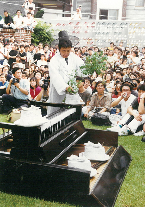 무속 신앙에 대해 무한한 자부심을 지녔던 백남준(1932~2006)은 스스로를 ‘여러 사람이 소리를 지르고 춤을 추도록 부추기는 광대’와 ‘굿쟁이’라고 했다. 그는 ‘한국의 무속은 신과 인간을 연결해주는, 한마디로 ‘소통’이고 ‘커뮤니케이션’이라며, 다음과 같이 말한다. “점과 점을 이으면 선이 되고, 선과 선을 이으면 면이 되고, 결국 오브제가 세상이 되는 게 아니겠어? 신과 인간을 연결해주는 한국의 무속은 따지고 보면 세상의 시작인 셈이지.” 백남준이 세습무 같다고 했지만, 그 역시 하데스의 세계에 다녀왔다. 한국전쟁이 발발했을 때 그는 18세였다. 마르크스주의자인 자신이 공산주의를 피해, 자본주의가 제공하는 피란 열차를 탔다는 사실은 그의 정체성에 커다란 혼란을 가져왔다. 폭탄이 터지는 급박한 상황이었지만, 그는 더욱 치열한 내적 전쟁을 겪었다. 이때 그는 선악의 경계선을 넘었고, 모든 판단을 유보하게 되었다.