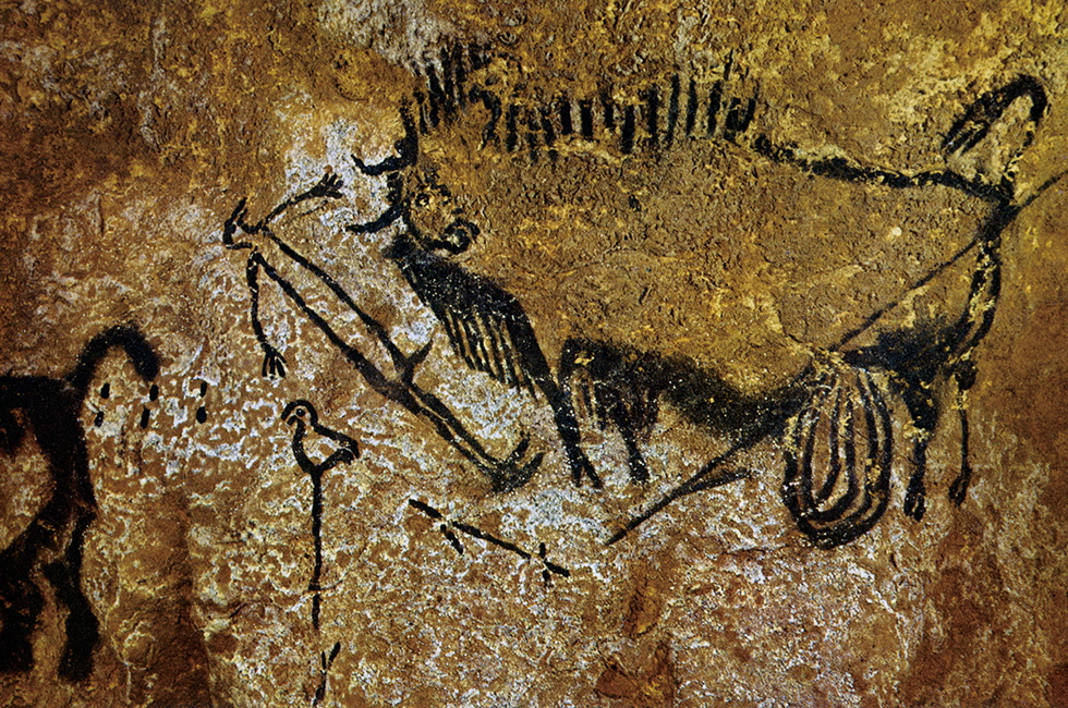 그렇다면 미술사에서 제의를 행한 최초의 샤먼은 누구였을까? 2천여 점의 생동감 있는 이미지를 자랑하는 라스코 동굴벽화에 등장하는 유일한 인물을 아는가? 이 등장인물이 다친 수렵인이라는 게 일반적인 정설이지만, 일각에서는 ‘샤먼’이라고 보는 학자가 늘어나고 있다. 새가 앉아 있는 솟대(axis mundi) 옆에 누운 이 사람은 새 가면을 쓰고 있는데, 새 모양의 손, 발끈 서 있는 웅장한 성기 등을 근거로 엑스터시에 빠진 샤먼이라는 주장을 펼치고 있는 것이다. 그 앞의 들소는 창자를 쏟아내며 죽어가고 있는데, 에로스(삶과 사랑의 충동)와 타나토스(죽음의 충동)가 기묘하게 얽혀 있다. 예술 사학자 아베 브뢰유(Abbe´ Breuil)는 라스코 동굴을 가리켜 ‘선사시대의 시스틴 성당’이라고 했다. 다시 말해 그림을 그리는 행위 자체는 의례였고, 그 장소는 지성소였다.