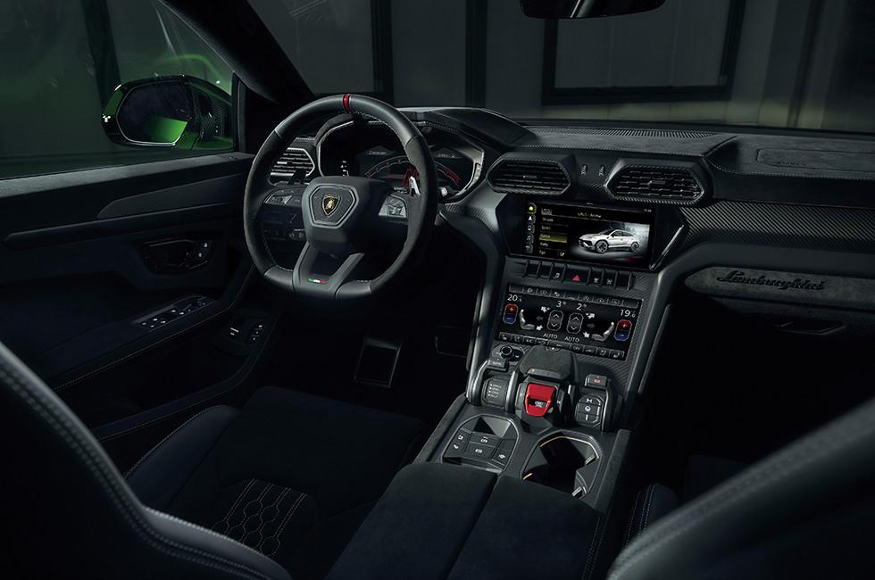 5 차체 색상과 대조되는 검은색 도어 핸들부터 검은색 알칸타라 가죽 스티어링 휠까지 매트한 검은색으로 제작한 우르스 퍼포만테. 색상부터 소재는 운전자의 취향에 따라 무한한 조합이 가능하다.