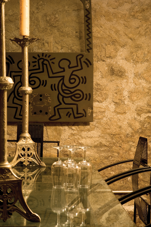 4 와인 저장고 안에는 마리오 보타가 디자인한 테이블과 의자가 놓여 있다. 벽은 피에르 켈러의 옛날 차에서 뜯어온 문짝으로 장식했는데, 그의 친구인 키스 해링이 완전히 새로 칠해 작업했다.