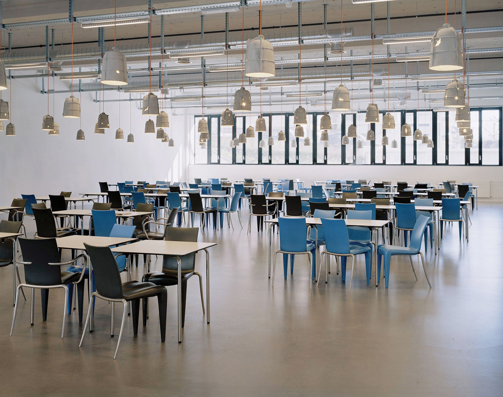 1 학교 내에 위치한 카페테리아. 천장에는 미셸 샤를로(Michel Charlot) 디자인의 ‘몰드’ 램프가 무수히 걸려 있다.