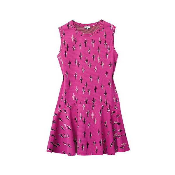사막의 뜨거운 볕을 품은 단단한 육질의 선인장 패턴을 수놓은 슬리브리스 원피스