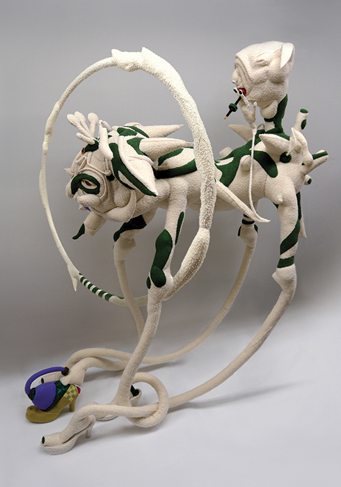 일단 종이를 기분 내키는 대로 자른다. 그중 마음에 드는 것의 형태를 해석해 드로잉으로 표현한다. 조금 전까지는 그냥 종이일 뿐이었는데 ‘오화진’과의 짝짓기를 통해 영감의 원천으로 거듭난 것이다(Project: What’s the Figure?). 또 우연히 만난 오브제를 무작위적으로 변형한 뒤 그 변형된 상태를 대상으로 ‘생(生)의 스토리’를 짓는다. 즉, 오브제는 ‘오화진’과의 짝짓기를 통해 운명이 바뀐 것이다(Project Ⅱ: The Fate of the Object). 또 다른 프로젝트에선 완성된 작품을 다시 탈바꿈시켜 운명의 변화와 환생 등의 이야기로도 발전시킨다(Project Ⅲ: Changed the Fate). 즉흥적 창작을 본격적으로 시작한 것은 2009년 전후였던 것 같다. 그 전에는 생각을 정리하고 스케치를 하고 계획을 세워 작업에 접근했다. 그런데 이런 과정이 점점 숙제처럼 나를 억압하는 것 같아 갑갑했다. 작업을 하면 할수록 그 행위 자체에서 욕망을 표출하는 동시에 쾌감을 얻고 싶었고, 본능적이며 주관적인 작업을 하고 싶어 했던 것 같다. 사실 들여다보면 창작 방법이 ‘선(先)개념 → 후(後)표현’에서 ‘선(先)표현 → 후(後)개념’으로 바뀐 것일 뿐, 머리를 쓰는 건 같다. 좌뇌부터 시작되느냐 우뇌부터 시작되느냐의 차이일 뿐인 것이다. 그러나 작업에 임하는 태도와 즐거움에는 큰 차이가 있었다. 취향의 범위에서 매번 또 다른 맛있는 걸 찾는 식욕처럼 조각을 하면 페인팅이 하고 싶고, 페인팅을 계속하면 붓 끝에 진저리가 나서 바느질을 하고 싶고, 어떤 날은 글짓기가 하고 싶다. 이는 계획 없이 본능에 맡긴 채, 운명에 맡긴 채 작업을 하기에 일어나는 자연스러운 흐름이다. 그러다 보면 작업 자체가 욕망의 발로(發露)가 된다.