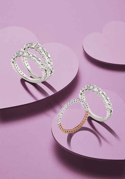 연인들의 영원한 사랑을 표현한 하트 모티브 플래티넘 반지 컬렉션을 출시했다. 밴드를 촘촘히 휘감은 하트 세팅이 다이아몬드를 감싸는 반지와 겹반지로 구성했다. 이번 컬렉션의 바탕이 되는 플래티넘은 디자인과 소재 연구 개발 프로젝트를 통해 탄생한 하드니스 플래티넘으로 경도와 강도가 우수하다.