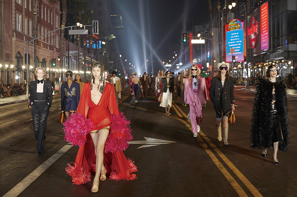 구찌가 위드 코로나 시대에 맞춰 미국 로스앤젤레스에서 오프라인 패션쇼를 개최하며 구찌 러브 퍼레이드 컬렉션을 공개했다. 할리우드 거리에서 런웨이를 펼친 이번 컬렉션은 구찌 크리에이티브 디렉터 알레산드로 미켈레가 유년 시절 특별한 영감을 받은 할리우드를 ‘소망의 아홉 글자(H.o.l.l.y.w.o.o.d)’로 칭하고, 이와 더불어 영화업계와 배우들에 대한 동경을 담았다.