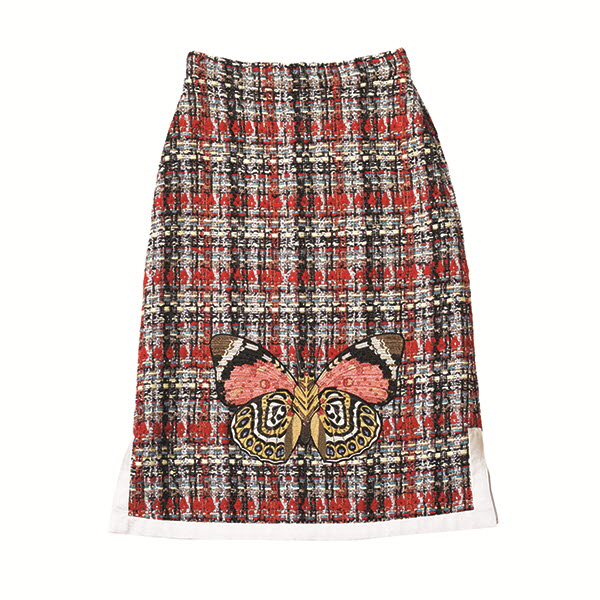 나비 자수가 포인트인 트위드 체크 스커트
