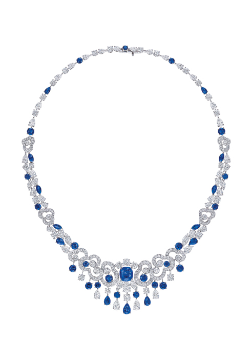 움직이는 구름의 형상을 그대로 재현한 네크리스는 굽이치는 모양의 파베 다이아몬드가 브릴리언트 컷 보석을 감싸 안은 형태로 표현했다.