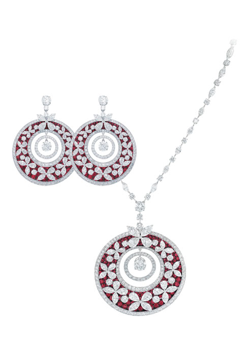 그라프의 고유 방식으로 보석을 완성하는 장인들의 손에서 탄생한 이 컬렉션은 눈부신 보석으로 장식한 파베 원형 테두리가 한쪽으로 좁아지는 형태 속에 만화경 이미지의 나비가 가득한 것이 특징.
