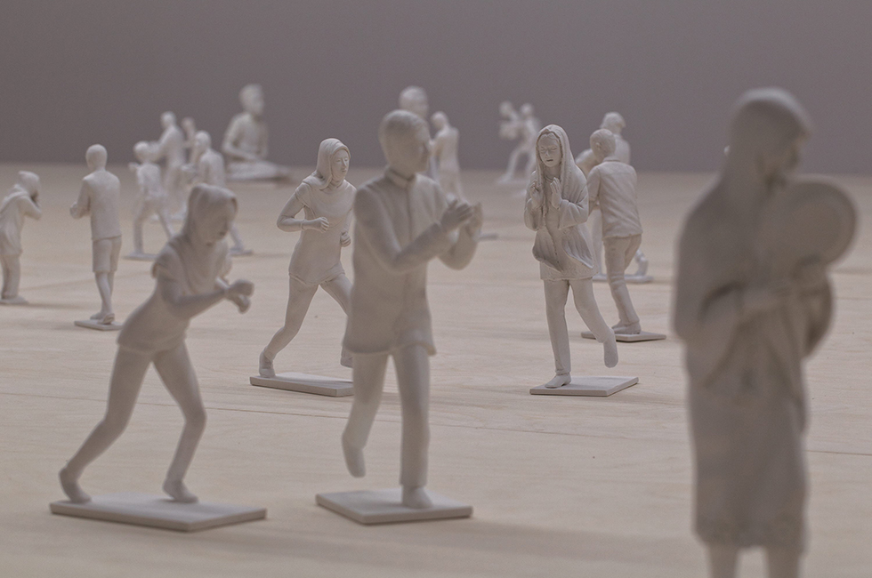 주 전시장인 용봉동 비엔날레 전시관에서는 난민 문제를 다룬 작품이 눈에 띄었다. ‘경계라는 환영을 마주하며’라는 소주제로 기획한 큐레이터 그리티야 가위웡(Gridthiya Gaweewong)의 섹션이다. 지구촌 곳곳의 미술 행사를 다녀봤다면, 아니 뉴스만 자주 접하더라도 “또 난민이야?”라는 반응이 나올 수도 있다. 하지만 이 가볍지 않은, 결코 좌시할 수 없는 이슈를 자신만의 방식으로 다룬 작가의 문제의식과 내공을 대하노라면 진지한 생각에 빠지게 된다. 제주도의 예멘 난민 문제에서 보듯 우리에게도 피부에 와 닿는 일이 아니던가. 2전시실에 설치된 프랑스계 알제리 작가 카데르 아티아의 영상물 ‘이동하는 경계들’은 특유의 오라로 시선을 압도하는 작품이다. 의자에 덩그라니 앉아 있는 의족이 충격적인 느낌마저 준다. 전근대 시기부터 현재에 이르기까지 사람과 공간의 관계를 다각적으로 검토하는 작가는 아프리카와 남미, 아시아를 여행하며 죽은 자들과 대화하고 무당이나 영매와 인터뷰도 한다. 호주 작가 톰 니콜슨이 1백10개의 작은 모형을 이용해 만든 디오라마 작품 ‘나는 인도네시아 출신입니다’도 눈길을 절로 사로잡는다. 온통 하얀색으로 칠해진 다양한 인간 군상은 인도네시아 통치 정책과 호주 이민 정책이 야기한 문제를 조명한 결과물이라고. 현실을 해맑게 비트는 방식 덕에 실소가 나오는 작품도 있다. 사람들이 이륙을 앞둔 비행기 위에 주르르 앉아 천진난만한 웃음을 짓고 있는 합성 사진. 기차 지붕에 올라타 통근하는 방글라데시 사람들의 모습을 빗댄 것. 알고 보면 터키로 온 시리아 난민들이라는 사실에 씁쓸해진다. 터키 작가 할릴 알틴데레의 ‘쾨프테 항공’이다.