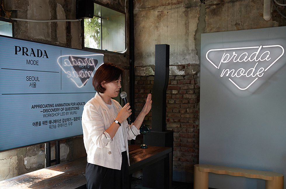 단 이틀에 걸친 행사였지만 서울 한복판에서 펼쳐진 프라다 모드 서울은 여러 장르가 얽히는 동시대 감성을 경쾌하고 자연스럽게 주고받을 수 있는 ‘판’이었다. 패션과 현대미술, 영화, 미식, 공연 등 다양한 콘텐츠가 어우러지는 무대는 꽤 많지만, 좀 더 진중히 ‘느껴보고’ 싶게 만드는 힘을 품고 있고, 향유자에 따라서는 창조적 영감을 받거나 사색으로 이끄는 동기를 선사받는 경우는 그리 흔치 않다. 분명 같은 공간에 있지만 전혀 다른 경험을 할 수 있도록 복합 공간의 매력을 잘 활용하고 콘텐츠의 내실에도 공들인 기획이기에 가능했을 시너지였을 것이다. 개인적으로는 이만희 감독의 1964년 영화 <마의 계단>을 무한 제공되는 팝콘과 함께 감상할 수 있는 고마운 기회였다. 그리고 ‘어른을 위한 애니메이션 감상하기 – 질문의 발견’이라는 워크숍은 아트 주간의 번잡함에서 잠시 벗어나 삶의 속도와 우리를 둘러싼 다층적 세상에 대해 생각해볼 수 있었던, 예상치 못한 소중한 시간이기도 했다. 끊임없는 서비스로 미식에 대한 욕구를 채워주는 다이닝 메뉴는 매혹적인 ‘덤’으로 다가와 ‘행사의 신은 프라다를 입는다’라는 문구를 떠올리게 만들기도 했다. 잠시라도 이 정도의 찬사가 나왔다면 아트 마케팅이라는 수식어든 메세나 요소 짙은 브랜드의 후원이든, 서울의 다양한 크리에이터들과 함께한 이 행보는 분명 성공적이라 해야 할 듯싶다.