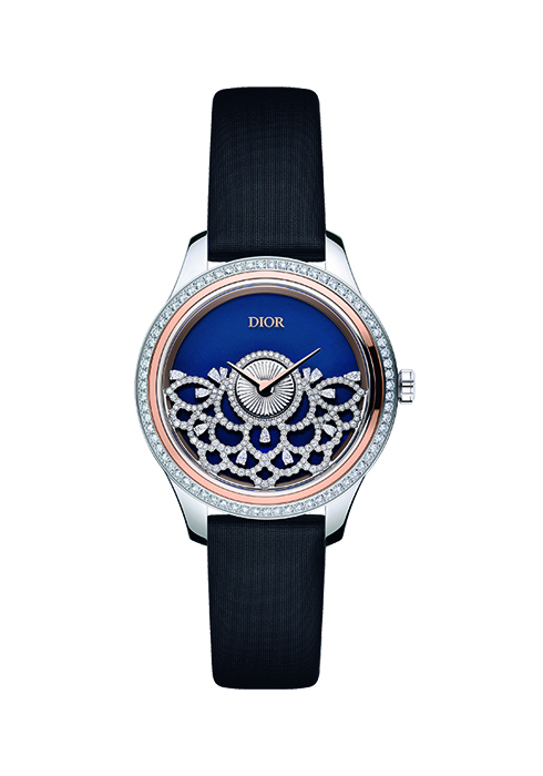 디올에서 디올 그랑 발 덴텔(Dior Grand Bal Dentelle) 컬렉션을 선보인다. 다이얼 위에서 작동하는 로터와 움직임은 마치 무도회에서 춤추듯 회전하는 화려한 드레스를 떠올리게 한다. 이번 컬렉션은 디올의 쿠튀르 드레스에 입체적인 새틴과 파유를 더한 듯한 실크·메시·깃털·스톤 디자인에 골드빛 스레드를 담았다. 고급스러운 소재와 다채로운 컬러로 황홀한 분위기 속 무도장에서 춤을 추는 듯한 느낌을 경험할 수 있다.