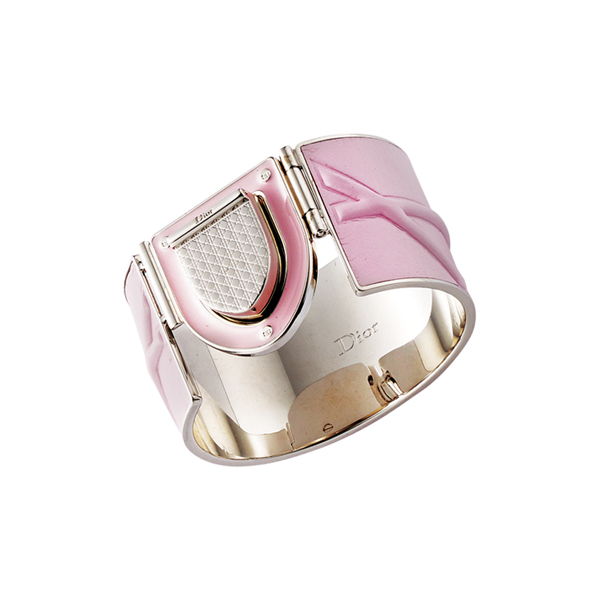 디올 가방의 버클 장식에서 영감을 얻은 뱅글