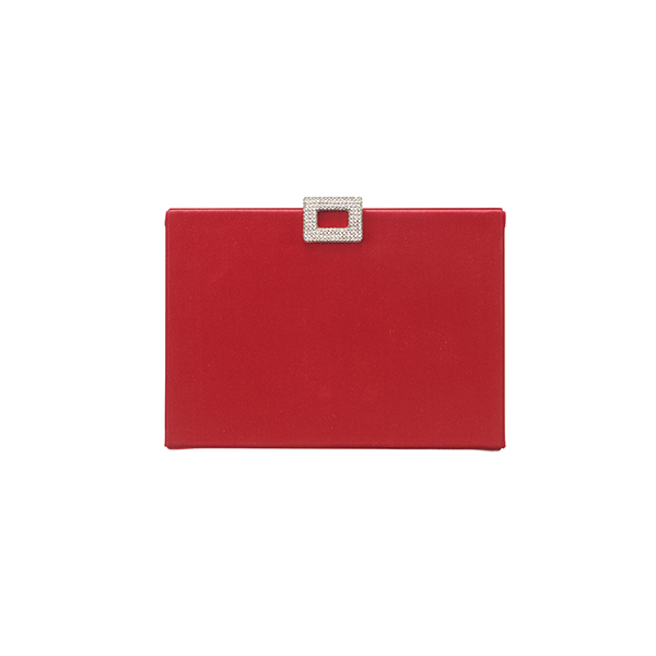 강렬한 레드 색상의 사각 클러치 백.