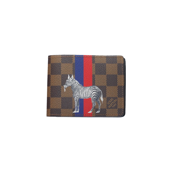 다미에 캔버스 위에 얼룩말을 새긴 남성용 반지갑