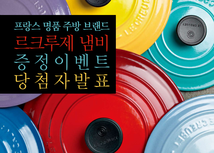 홈페이지 새단장 이벤트 당첨자 발표 작성일자: 1월 07, 2013 글쓴이: stylechosun 조회수: 2913 1월 07, 2013 이벤트에 응모해 주신 분들께 진심으로 감사의 말씀을 드립니다 르크루제 이벤트 당첨자 명단은 아래와 같습니다. 무쇠 냄비 (4명) hgl4005 Jiniia sunhaepark Chasem 무쇠그릴 (2명) junhkim54 philos7 당첨되신 모든 분들 축하드립니다. 이벤트 당첨후 주소를 변경하실 분은 793-5330 으로 확인 부탁드립니다. 글 네비게이션 이전글크레모랩 프레쉬 워터젤 증정 이벤트 다음글르베이지와 함께하는 세계적 발레리나 강수진과의 만남 이벤트