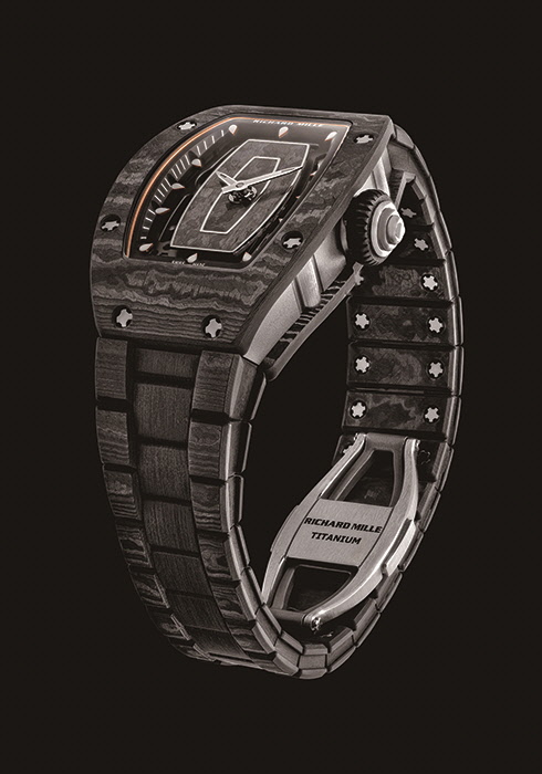 13개월의 연구 끝에 선보이는 제품. 카본 TPTⓡ와 티타늄 소재, 2백 개의 정교한 부품으로 리차드밀의 섬세한 미학을 표현했으며, 무게가 29g에 불과해 가볍고 편안하다.
