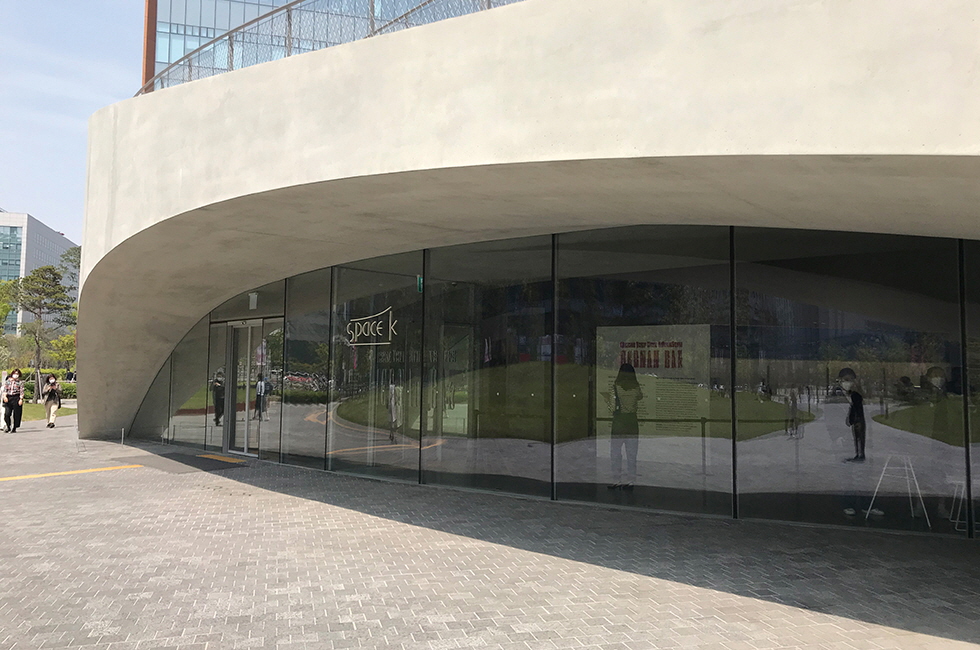 지구촌에 무법자처럼 찾아온 코로나19 탓에 대대적인 오픈 파티를 하지 못했던 스페이스K 서울처럼 지난해 조용히 문을 연 또 다른 문화 예술 공간이 있다. 서울 서초구 반포동 이수그룹 본사 사옥에 자리 잡은 ‘스페이스 이수’. 광주비엔날레 김선정 대표가 남편인 이수그룹 김상범 회장과 뜻을 맞춰 약 495m2(1백50여 평)의 1층 로비를 누구에게나 개방된 전시 플랫폼으로 탈바꿈시켰다. 김 대표가 운영하는 비영리 성격의 예술 기획 단체 ‘사무소’에서 기획을 맡는데, 현대미술만이 아니라 공예, 인테리어처럼 일상과 맞닿는 다채로운 콘텐츠를 소개한다는 방향성을 세워뒀다.
