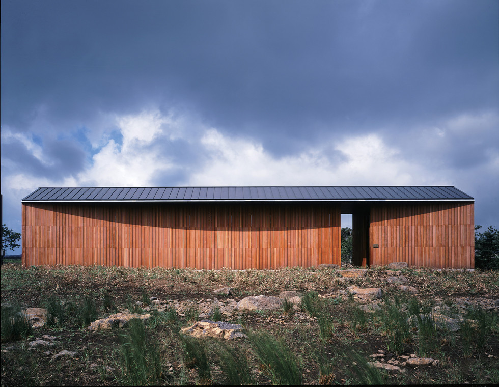 포도 호텔이 한옥의 포근한 공간감과 비정형 배치에서 이뤄낸 질서의 아름다움을 보여준다면, 자연과 순수한 형태, 재료의 물성과 추상성을 통해 공간에 엄숙함과 고요함을 부여한 것은 핀크스미술관연작이다. 명상과 사색의 공간을 위해 만든 이 미술관은 별도의 전시품을 두지 않고 자연과 건축물이 곧 전시물이 되도록 하기 위해 각각 물, 돌, 바람을 담았다. 수미술관은 원형으로 열린 하늘 아래 사각 평면에 물을 담아 바람에 흐르는 물결처럼 정적인 공간을 만들었다. 석박물관은 점점 풍화되는 붉은 코르텐강으로 만든 단순한 상자로, 작은 돌을 두고 멀리 제주 산방산의 풍경을 끌어들였다. 뿐만 아니라 천장의 실린더를 통해 시시각각 떨어지는 빛의 변화를 경험하게 했다. 풍미술관은 제주의 바람을 담기 위해 활처럼 휘게 한 오두막 형상의 나무 상자다. 입면의 나무판 사이에 틈새를 내 바람이 통과하도록 했는데, 거센 바람이 불어올 때 그곳에 서 있으면 건물 전체가 바람이 연주하는 악기가 된다. 시적인 은유, 자연에 대한 사유, 무엇보다 잃어버린 자연에 대한 체험과 기억을 불러일으키는 이추상적인 건축물은 이타미 준이 내밀하게 시도해온 건축의 본령, 즉자연과 야성, 추상을 모두 보여주는 작업이다. ‘자연과 함께 익어가는 건축’이라는 말처럼 핀크스미술관은 폐허가 되더라도 가치를 지닐 수 있는 건축에 대한 이타미 준의 꿈을 축약해놓은 셈이다.