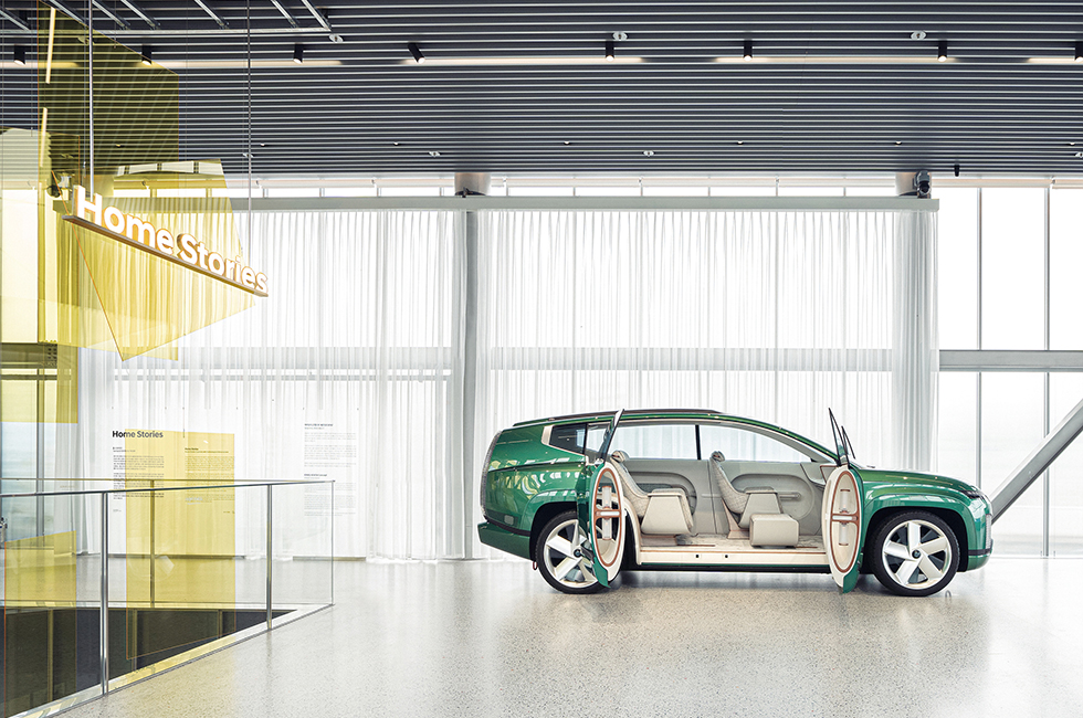 현대 모터스튜디오와 협업할 때 가장 먼저 ‘비트라 디자인 뮤지엄의 전시에 현대자동차가 더할 수 있는 가치가 무엇인가?’에 대해 고민했습니다. 2021년 열린 협업 전시 <헬로 로봇, 인간과 기계 그리고 디자인>에서는 현대자동차가 탄소 중립에 대한 의미를 더했고, 이번에는 미래의 인테리어에 모빌리티를 더했습니다. 모빌리티가 기여할 수 있는 인테리어의 비전에 대해 얘기하고 싶었죠.
