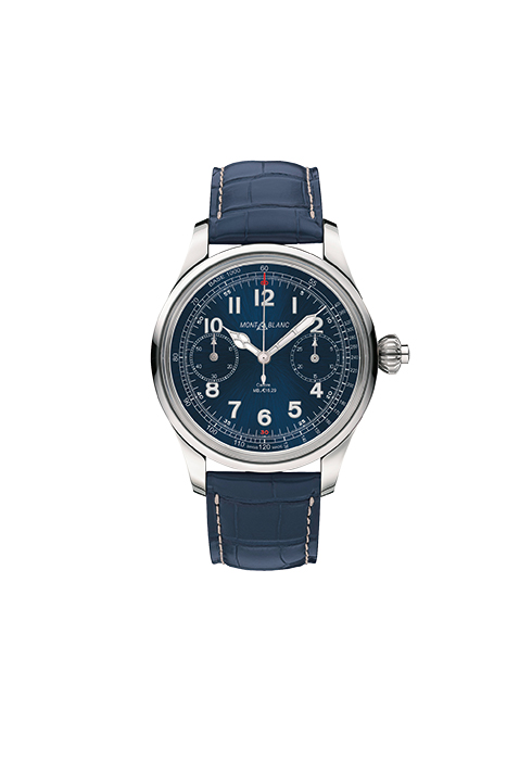 큼직한 크라운, 읽기 쉽도록 크게 표시한 야광 아라비아숫자 인덱스 등 몽블랑 미네르바 매뉴팩처의 오리지널 디자인을 재현해낸 제품이며, 오직 1백 점 한정으로 선보인다.