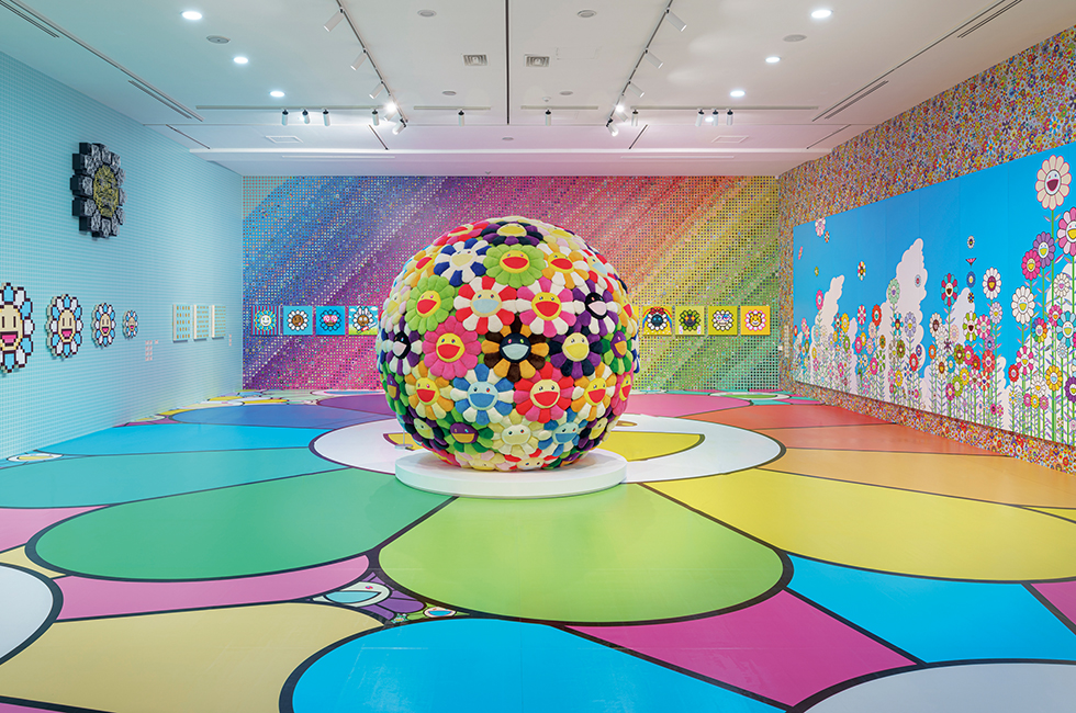 ©Takashi Murakami/Kaikai Kiki Co., Ltd. All Rights Reserved. Courtesy of the artist and Perrotin. 각각의 이미지에서 ‘꽃’ 시리즈(2번), ‘무라카미 좀비와 폼 좀비’(2022), ‘클론 X x 무라카미 다카시‘(2022) 등의 작품이 보인다. 작가가 오타쿠 문화
