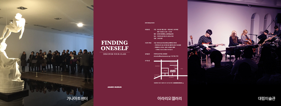 또 하나의 문화 예술 강좌 ‘Finding Oneself’는 예술 작품을 눈과 마음으로 느끼며 나를 찾아가는 시간과 과정을 제안한다. 2016년 3기에서는 ‘Design Dive’란 주제를 통해 삶에 밀접한 디자인을 다각도로 조명해 디자인과 예술에 흠뻑 빠지는 시간을 가질 예정. 또 아라리오 뮤지엄의 해외 탐방 프로그램은 해마다 주제에 맞는 여행지를 선정해 전문가와 함께 미술뿐 아니라 예술 전반을 살펴보는 시간을 마련한다. 2015년에는 ‘各人各色, 독일 미술관 여행’을 통해 ‘보존과 창조’에 맞닿은 곳을 여행했고, 2016년에 진행할 ‘이탈리아 여행’은 세계적 디자이너의 스튜디오뿐 아니라 이탈리아 디자인 명소 곳곳을 누리는 시간이 될 예정이다(www.arariomuseum.org).