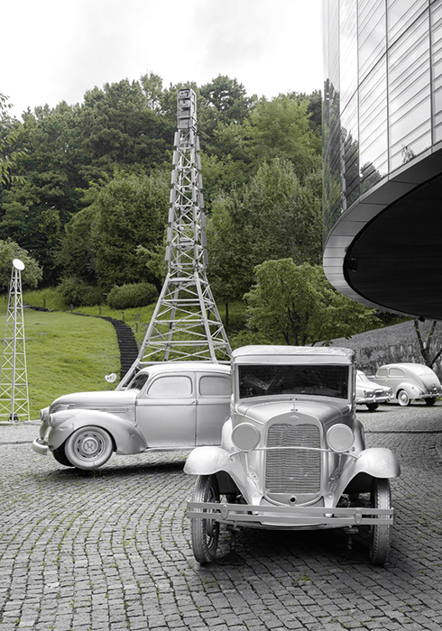 20년 만에 국내에 첫 공개된 ‘트랜스미션 타워’는 클래식 자동차 5대, 모차르트의 진혼곡과 함께 백남준아트센터 뒤뜰에서 선보였다(12월 3일까지 백남준아트센터에서 열리는 특별전 <트랜스미션: 너에게 닿기를> 전시의 일환). 레이저와 네온이 만들어내는 빛도 신비롭지만, 백남준을 오마주한 윤제호 작가의 레이저와 사운드 디자인이 더해지며 현대성이 증폭되었다. 먼 우주에서 오는 주파수 같은 사운드와 함께 타워의 레이저가 숲과 언덕에 쏟아질 때 오로라가 펼쳐지는 북유럽 어딘가에 와 있는 듯하기도 하고, 막막한 우주에서 행성을 보는 것도 같다. 그리고 이런 생각을 하게 된다. ‘백남준의 끝은 어디까지일까’라는. 그리고 우리는 백남준이 레이저 빛으로 상상했던 정보 시대에 살고 있지만, 그의 예견처럼 인간과 기술이 균형을 이루는 환경에서 잘 살아가고 있는지 생각해보게 된다.