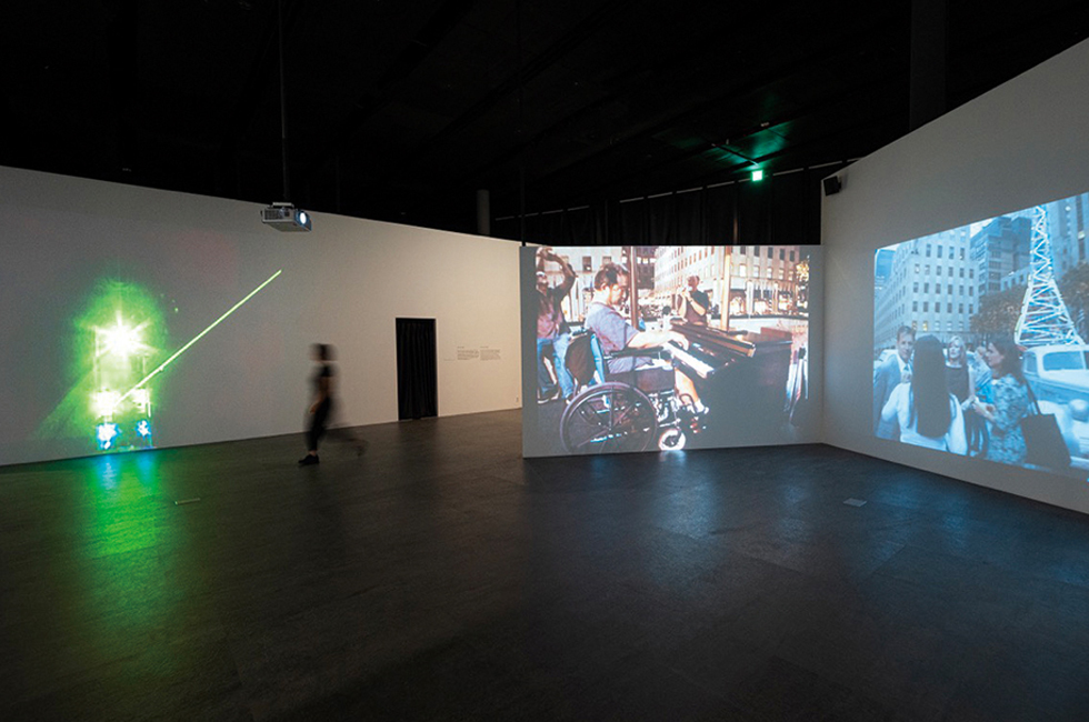 얼마 전 키아프와 프리즈 아트 페어의 동시 개막과 더불어 펼쳐진 아트 주간, 백남준아트센터에서 국내 최초 공개한 백남준의 대형 레이저 설치 작품 ‘트랜스미션 타워’도 마찬가지다. 백남준의 ‘트랜스미션 타워’는 뉴욕 9·11 테러가 일어난 이듬해인 2002년 뉴욕 록펠러 센터 앞에서 세계에 평화와 위로를 전달했던 작품이다. 당시 아카이브 영상을 보면, 뉴욕 록펠러 센터 앞 반짝이는 타워를 중심으로 모인 사람들은 백남준이 휠체어에 앉아 한 손으로만 피아노를 두드리는 광경을 보게 된다. 은색으로 칠한 오래된 자동차들(‘20세기를 위한 32대의 자동차: 모차르트의 진혼곡을 조용히 연주하라’) 사이로 거대한 타워가 서 있고, 담백하게 울리는 피아노 소리에 따라 타워 위 레이저 선들이 하늘을 수놓는다. 백남준의 레이저 협업자 노먼 발라드가 백남준의 피아노 사운드에 맞추어 네온과 레이저가 반응하도록 프로그래밍해 노년의 거장을 도왔다. 백남준은 당시 한 인터뷰에서 이렇게 말했다. “레이저 광선은 대단히 신비스럽고, 달콤하고, 숭고하기까지 하단 말이야”라고. 당시 투병 중이었던 백남준에게 레이저는 새로운 꿈을 꿀 수 있도록 하는 매개체였다.