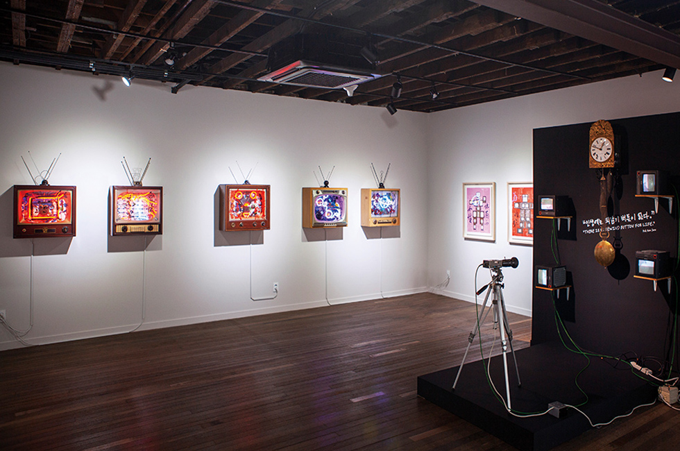 백남준이 인간과 기술, 동양과 서양, 전통과 현대 등 장르 간 경계를 뛰어넘고 혁신과 통합을 실천한 세기의 낙관적인 예술가라는 점은 현재 시점에서 두손 갤러리의 전시 <I never read 1984>(10월 28일까지)에서 느낄 수 있다. 전시 제목은 조지 오웰의 디스토피아적 소설 <1984>를 이용한 것이다. 사실 소설에서 1984년 미래는 테크놀로지 기계에 감시당하는 통제된 디스토피아적 삶으로 묘사되지만 1984년 1월 1일 백남준은 인공위성을 활용해 텔레비전 쇼인 ‘굿모닝 미스터 오웰’을 선보이며, 기계문명에 대한 절망과 비관이 아니라 테크놀로지를 통해 전 세계인이 행복해질 수 있다는 유토피아적 세계관을 보여주었다. 이번 전시는 백남준을 총체적으로 이해하기 위한 전시인데, 그중 ‘Video Chandelier’ 작품이 새롭게 다가온다. 인간과 자연, 기계의 공생을 꿈꾼 백남준의 세계관을 보여주는 작품으로, 식물과 TV를 결합하고 샹들리에를 더한 무척 아름다운 작품이다.