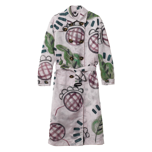 붓으로 슥슥 그린 듯한 패턴이 인상적인 핸드 프린티드 트렌치코트