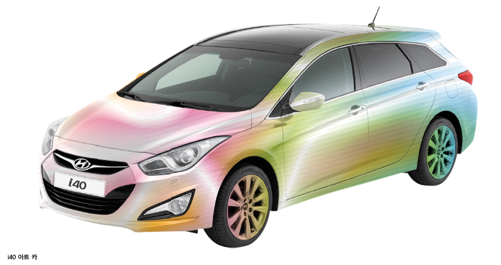 지난 3월 말 자동차 업계를 달궜던 서울모터쇼의 개최를 계기로 다시 ‘아트 카 바람’이 불고 있다. 현대자동차는 해외 디자이너와, 미니(MINI)를 앞세운 BMW그룹은 국내 아티스트와의 협업을 바탕으로 기존 모델에 ‘새 옷’을 입힌 아트 카를 각각 선보였다. 사실 아티스트와의 컬래버레이션은 이미 흔해진 마케팅 전략이지만 쟁쟁한 거물이나 참신한 발상과의 만남이라면, 그것도 전시 효과가 큰 자동차 분야에서라면 여전히 시선을 끌기 마련이다. 아티스트 고유의 개성을 살리면서도 브랜드가 지향하는 스타일에 맞추는, 만만찮은 과제를 해결해야 하지만 말이다. 현대차는 한화그룹, 현대카드 등과 작업했던 산업디자이너 카림 라시드와 손잡고 중형차 i40 아트 카를 내놓았다. 현대차그룹은 지난해 하반기에는 저명한 그래픽디자이너 스테판 사그마이스터의 손길이 닿은, 흑백의 타이포그래피가 근사한 쏘울 아트 카(기아차)로 주목받았다. i40 아트 카의 경우, ‘디자인과 테크놀로지의 만남’이라는 주제 아래 차량이 달릴 때의 느낌을 표현하고자 삼각형, 무지개 등을 활용한 외관 디자인이 돋보였다는 평가다. 더불어 올해 서울모터쇼에는 프리미엄 소형차 브랜드 미니가 팝 아티스트 김일동 작가와 함께 진행한 아트 카 프로젝트 ‘破·竹·之·勢(파죽지세)’가 공개됐다. SAC(Sport Activity Coupe) 모델인 미니 컨트리맨에 ‘팝 아트’의 영감을 수놓은 합작품으로, 힘찬 붓 터치가 인상적. 특히 김 작가가 현장에서 생생한 제작 과정을 보여줘 인기를 끌었다는 후문이다.