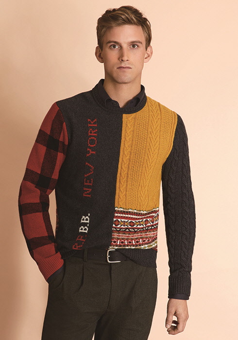 스웨터 울 블렌드 크루넥 스웨터는 브룩스 브라더스의 홈타운인 뉴욕(New York) 레터링 포인트, 페일 아일과 케이블 니트, 플래드 패턴 등 다양한 디테일을 믹스한 패치워크 디자인이 특징이다. 이탈리아 메리노 울을 섞어 보온성이 뛰어나고, 가볍고 부드러워 착용감이 좋으며, 브랜드 고유의 콘셉트와 컬러를 잘 표현했다. 다채로운 컬러로 재킷이나 코트와 매치해 포인트 주기에 적합하다.