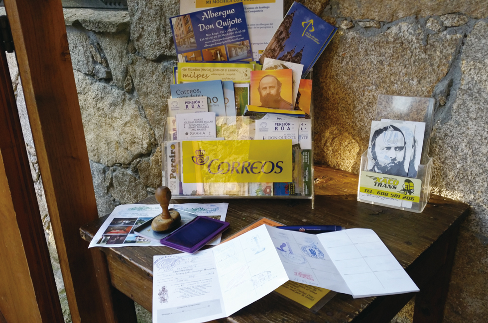 도보 일정은 스페인 북서부의 갈리시아 지방, 사리아에서 시작했다. 산티아고 순례길 중 ‘프랑스길’은 프랑스 작은 마을 생장 피에 드 포르에서 출발해 피레네 산맥을 넘어 스페인 북서쪽 도시 산티아고 데 콤포스텔라에 있는 대성당에 이르는 길이다. 산티아고 데 콤포스텔라에서 111.5km 떨어진 사리아는 나와 같은 ‘단기’ 순례객의 단골 출발지다. 안개가 자욱한 사리아는 중세 마을처럼 고풍스러웠고, 순례길에 대한 환상처럼 근사했다. 산티아고 순례길 위에서는 ‘노란 화살표’가 등대와도 같은 역할을 한다. 지도가 없더라도, 노란 화살표만 잘 찾아가면 길을 잃지 않는다. 친절하게도 수많은 사람들이 대문에, 담벼락에, 표지석에 노란 화살표를 새겨 넣었다. 길치인 나도 눈만 크게 뜨면 되었다. 기능적으로도 그렇지만, 심미적으로도 노란 화살표는 훌륭했다. 각자의 개성에 따라 어떤 것은 타일이었고, 어떤 것은 페인트였고, 어떤 것은 부조였다. 화살표 위에는 여러 나라 언어로 쓰인 응원 메시지가 담겨 있었다. 에스파냐어도 있었고, 영어도 있었고, 중국어도 있었다. 길을 걷다 지치면 노란 화살표를 보고, 다리에 힘 한번 주면 됐다.