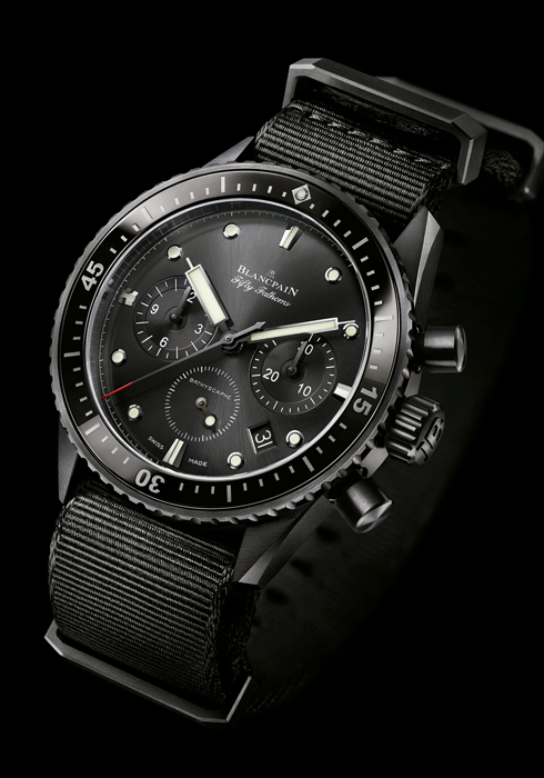 다이버 워치의 명가 블랑팡에서 1950년대 후반에 출시한 클래식 다이버 워치 바티스카프(Bathyscaphe)는 2013년 재해석된 뒤 올해 플라이백 크로노그래프를 장착해 새로운 피프티 패텀즈 바티스카프로 태어났다. 시간당 3만6천 회의 진동수를 자랑하는 새로운 F385 블랑팡 매뉴팩처 칼리버를 장착했으며 4시 방향의 푸시 버튼을 간단히 누르기만 하면 크로노그래프를 재설정할 수 있도록 고안했다. 사파이어 크리스털 글라스의 백 케이스를 통해 실리콘으로 만든 항자기성 밸런스 스프링을 볼 수 있다는 것도 매력적이다. 내부에 외부 정전기 차단을 위해 기계 장치에 두르는 금속판인 패러데이 케이지가 자리하고 있어 실리콘 밸런스 스프링과 완벽한 궁합을 이룬다. 바티스카프 모델은 블랑팡이 데일리 워치로도 착용할 수 있는 다이버 워치를 개발하기 위해 탄생한 모델이기에 그 역사가 깊음에도 모던하며 실용적이다.