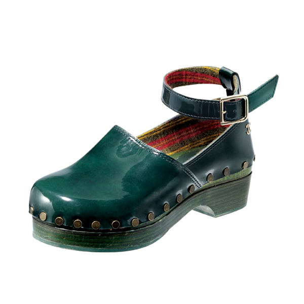투박한 나무 굽이 빈티지하고 멋스러운 그린 컬러 스트랩 슈즈