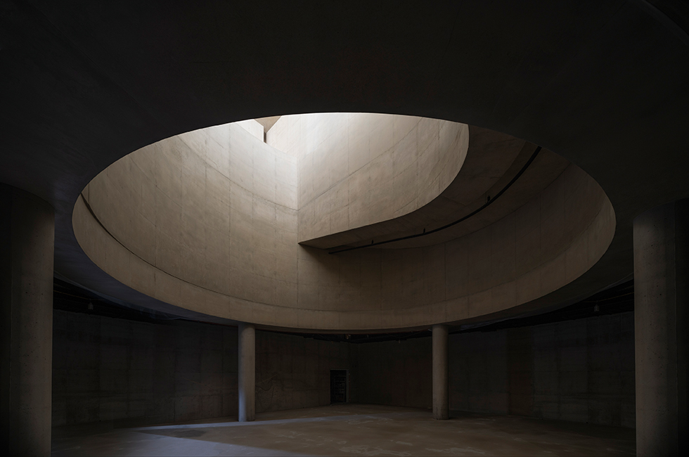 이렇듯 첫인상은 ‘절제된 품격’이라는 표현이 어울리는데, 내부로 발을 들이면 또 다른 분위기의 풍경이 펼쳐진다. 경건함은 여전히 묻어 있지만 보다 해사하고 융통성이 느껴진다. 특히 개관전 1부(오는 11월 20일까지)를 진행 중인 여러 층에 걸친 전시 공간은 전반적으로 고요하면서도 군데군데에서 낭만이 묻어난다. ‘콘텐츠’ 자체를 편안하게 살려주는 평온한 그릇 역할을 하는 것이다. 지상 도입부의 소박한 야외 정원을 낀 1층을 비롯해 1층 로비에서 2층 전시장으로 이어지는 나선형 계단의 완만한 곡선미, 그리고 지하 2층 전시장에서 1층 천장까지 둥근 모양으로 시원하게 뚫려 빛을 통과시키는 구조가 무게감을 자아내면서도 멋스럽게 숨을 터주는 듯하다. “1층에서 아래를 내려다보면 지하 전시장을 볼 수 있으며, 나선형 계단을 따라 걷다 보면 새로운 공간을 마주하게 되고, 자연스럽게 전시장으로 이어집니다.” 피에르 드 뫼롱은 이처럼 새롭게 발견하는 ‘파운드 스페이스’가 그들의 대표작 중 하나인 테이트 모던의 터빈홀 같은 것이라고 설명하면서 이러한 발견의 미학, 그리고 공간의 다양성을 원했던 클라이언트의 의도가 확실하고 일관성이 있어 좋았다고 거듭 강조했다. “저희는 편견 없이 순수한 아이처럼 새로운 걸 찾고 세상을 알아가는 마음으로 임하고 있습니다(중략). 송은은 어떤 공간, 기능이 필요한지 명확히 알고 있었기에 저희가 즐거운 여정을 떠날 수 있었습니다.”