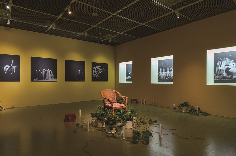 6 전시 풍경. 참여 작가 중 하나인 차이하이루(Tsai Hai-Ru)는 화분과 의자를 놓아 관객이 편하게 몰입하도록 배려했다.