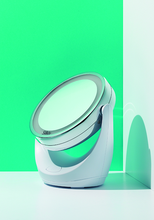실큰은 보다 완벽한 메이크업을 도와주는 LED 라이트 거울, ‘메이크업 미러와 미러 루미’를 출시한다. 자연광과 백색광 2가지 타입의 LED 조명을 장착한 미러 루미는 무선 충전 방식으로, 손잡이 거울을 거치대에 꽂아두면 자동 충전되며, 16시간 동안 사용할 수 있다. LED 라이트가 양면 거울에 내장된 메이크업 미러는 360도 회전이 가능하며, 반대편에 5배 확대경이 있어 세밀하고 섬세한 피부 표현을 도와준다.
