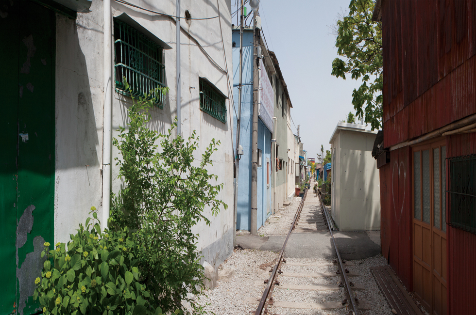 진정한 여행가는 한곳에 오래 머무르기 마련이다. 아직도 가장 짧은 시간에 가장 많은 곳을 점 찍으려는 여행가가 남아 있을까? 창작 문화 공간 여인숙에서 첫선을 보인 김영경의 ‘군산 3부작’ 연작은 8개월 동안 군산에서 입주 작가로 여행하며 이방인의 눈으로 바라본 군산을 사진과 설치 이미지로 표현했다. 1부 ‘퇴적된 도시’에서는 일제강점기 수탈의 역사가 서린 철길을 담았고, 2부 ‘안녕, 신흥동’은 자연재해 위험 지구로 지정된 신흥동의 폐허를 멜랑콜리하게 촬영한 작품이다. 3부 ‘오래된 망각’은 과거 영화를 누리던 구시가지의 쇠락과 역사성을 담담하게 보여준다. 단기 관광객이 기억하는 군산의 근대 건축물과 적산 가옥, 일본식 사찰 동국사, 빵집 이성당이 아니라 과거와 현재, 미래가 혼재된 도시 풍경을 담아낸 것이다.